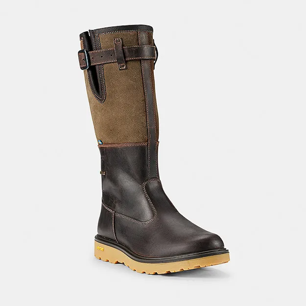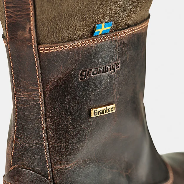 Frostviken är en bekväm stövel tillverkad i läder och mocka, varmfodrad med ull. Stöveln är utrustad med GRANTEX®, Graninges eget vattenavvisande membran som är resistent mot regn och snö och står emot kyla. Den har ett reglerbart spänne högst upp på skaftet och dragkedja på insidan. Innersulan är löstagbar och har extra dämpning under hälen. Yttersulan från Vibram® ger ett stötdämpande och stabilt grepp på underlaget. Frostviken är en varm och mångsidig stövel som förenar stil och funktion, lika självklar i stadsmiljö som ute på landet.